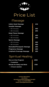 • 90 minutes – £90 - Remedial / Therapeutic Massage – £90